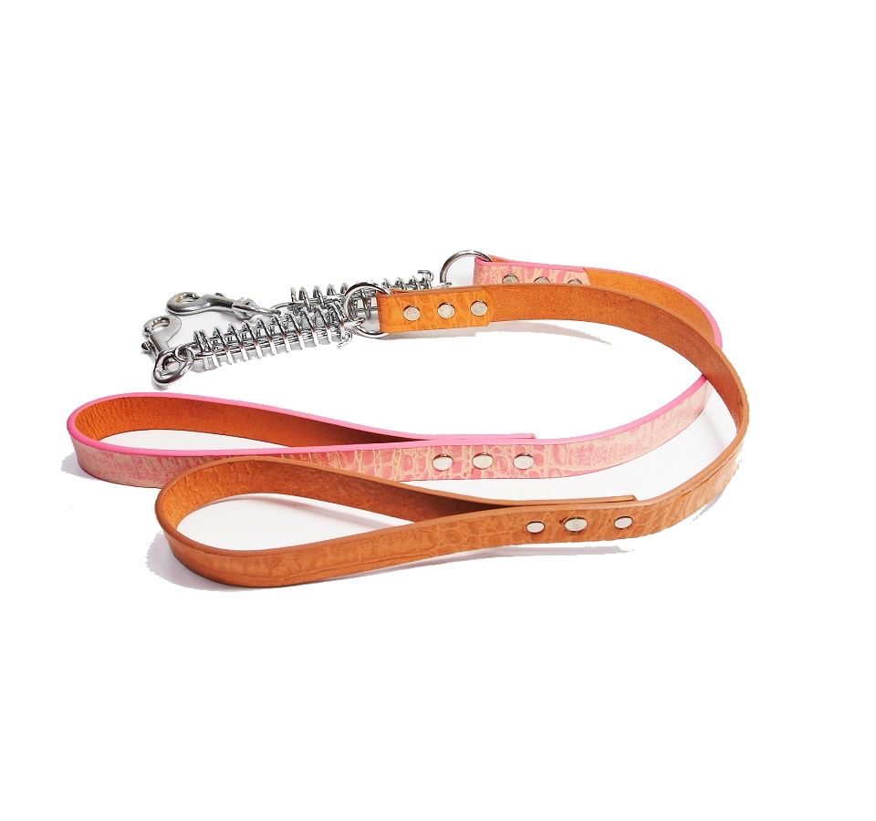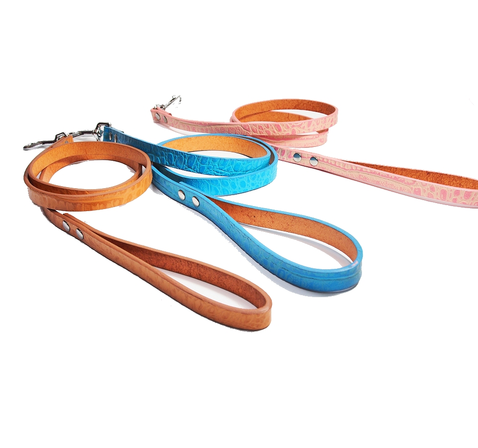 Full Grain Leather leash with Crocodile Embossed